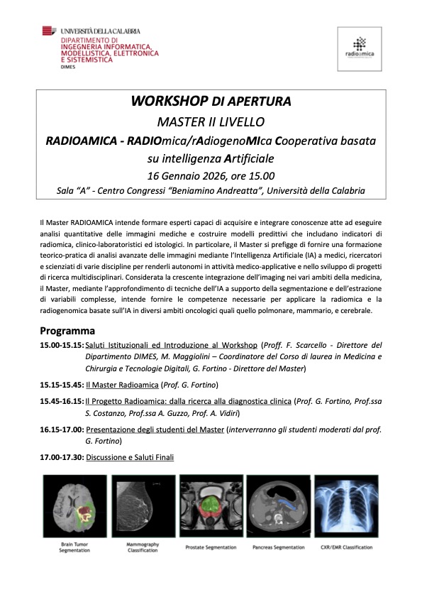 Workshop di apertura della 1° edizione del Master di II livello Radioamica a.a. 25/26, 16/1/26, Centro Congressi “Beniamino Andreatta”, Aula Stampa, Università della Calabria.