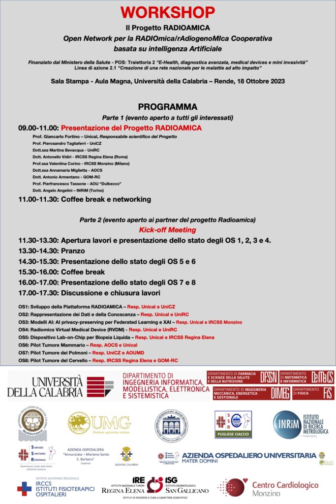 1° Plenaria “in presenza” del Progetto RADIOAMICA, 18 Ottobre 2023, Centro Congressi “Beniamino Andreatta”, Aula Stampa, Università della Calabria.